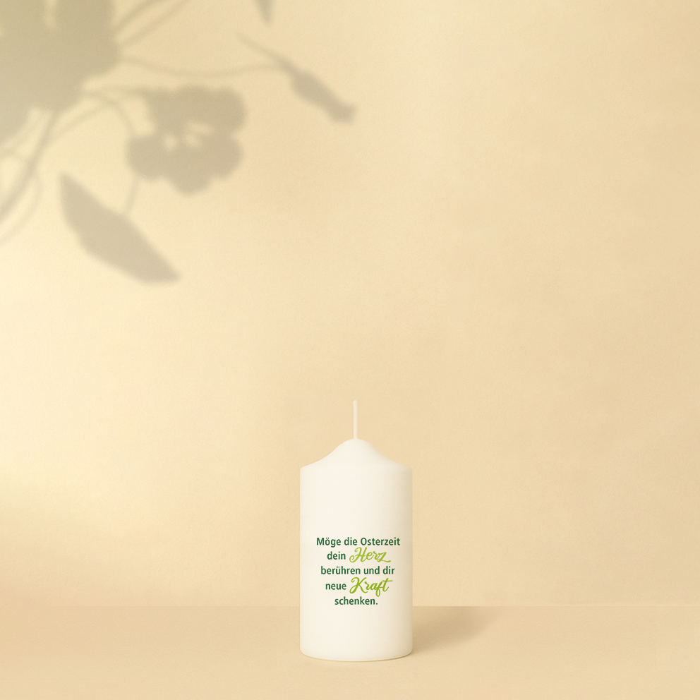 Florale Osterkerze mit Botschaft – liebevolles Lichtgeschenk voller Hoffnung und Kraft.