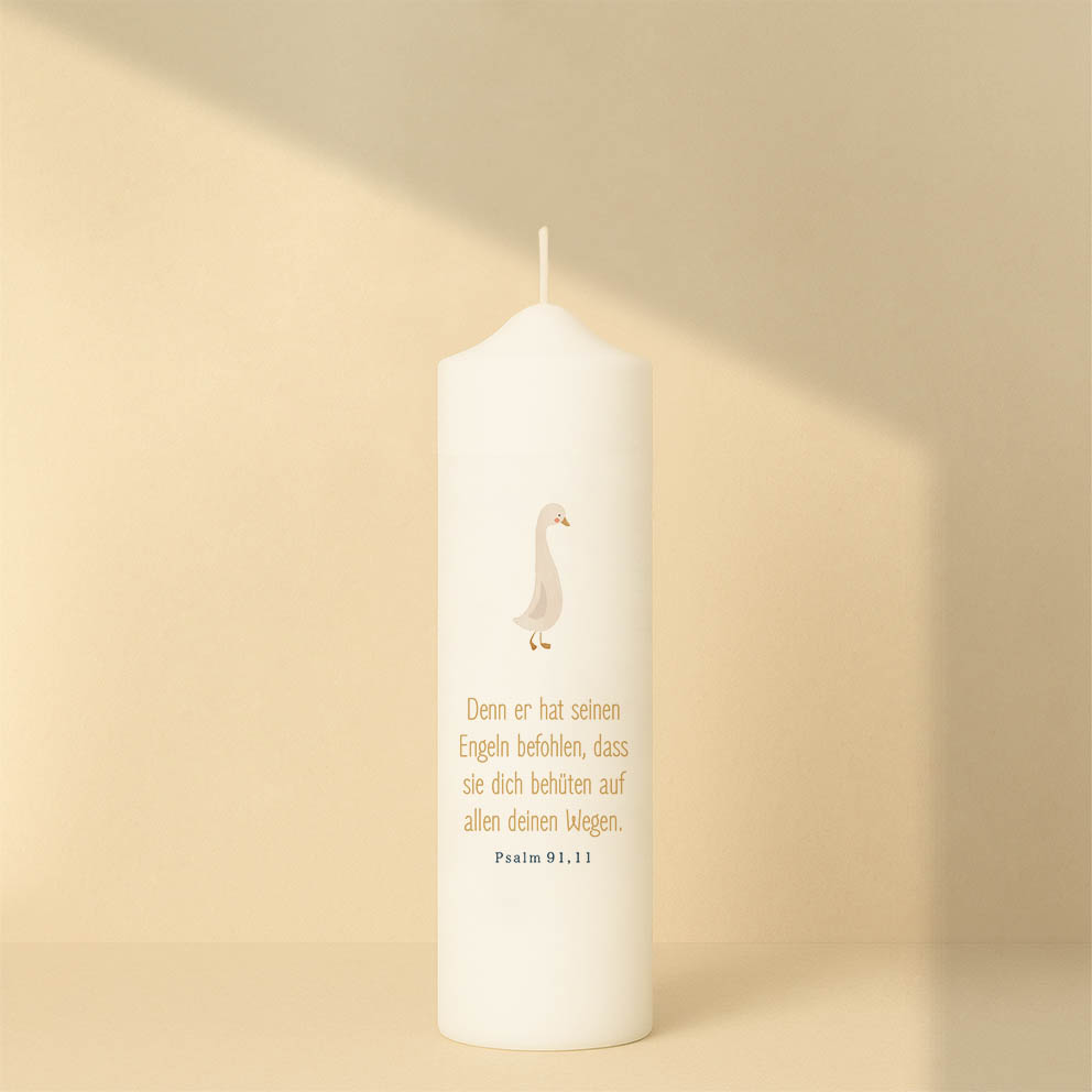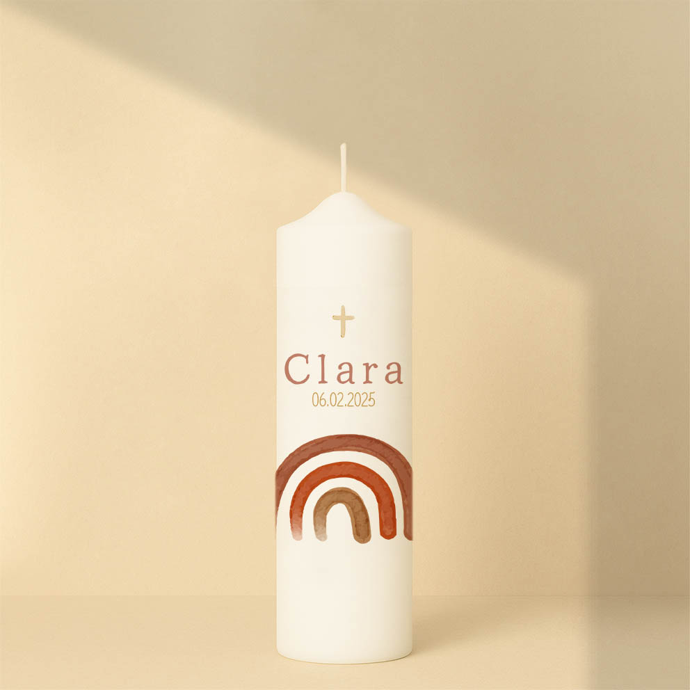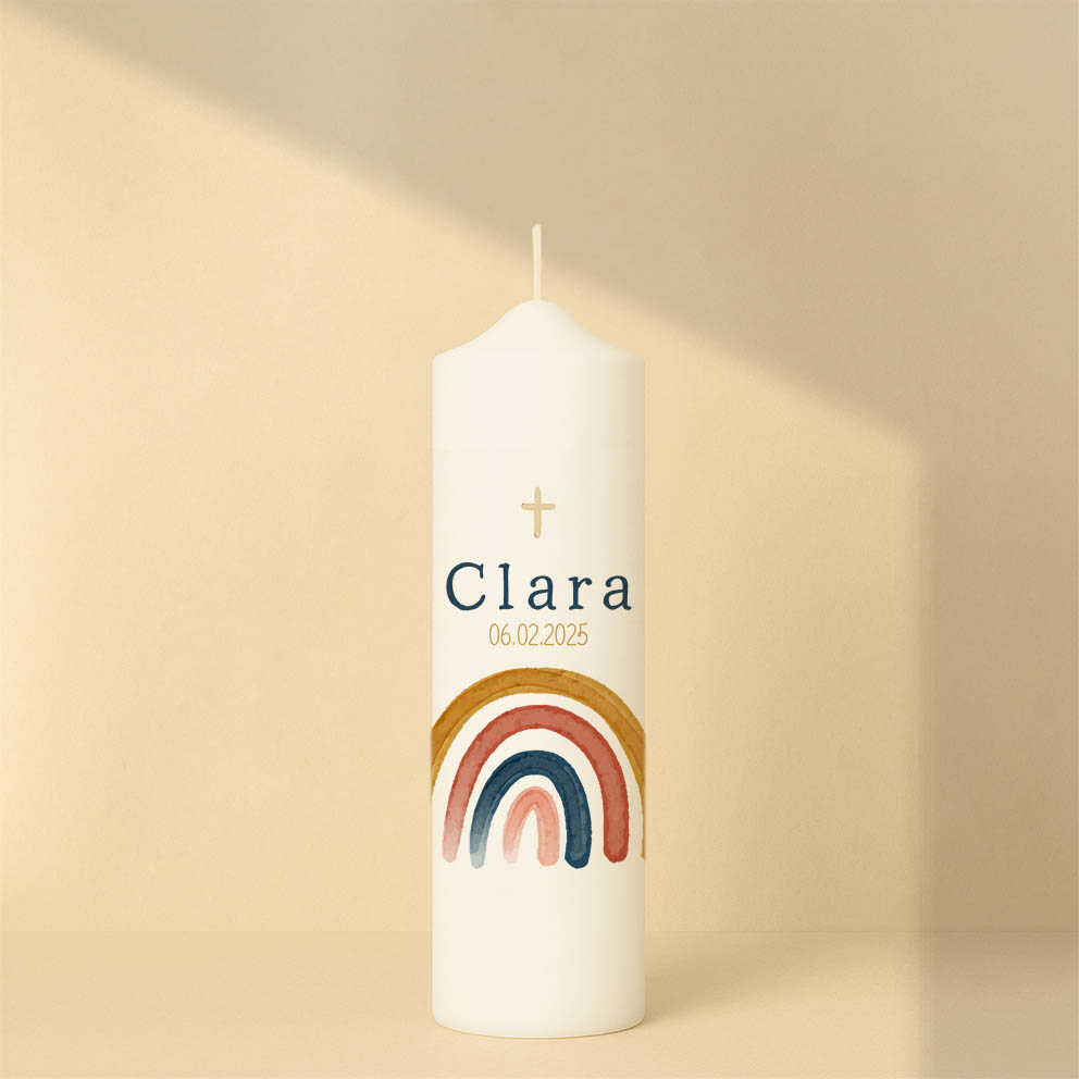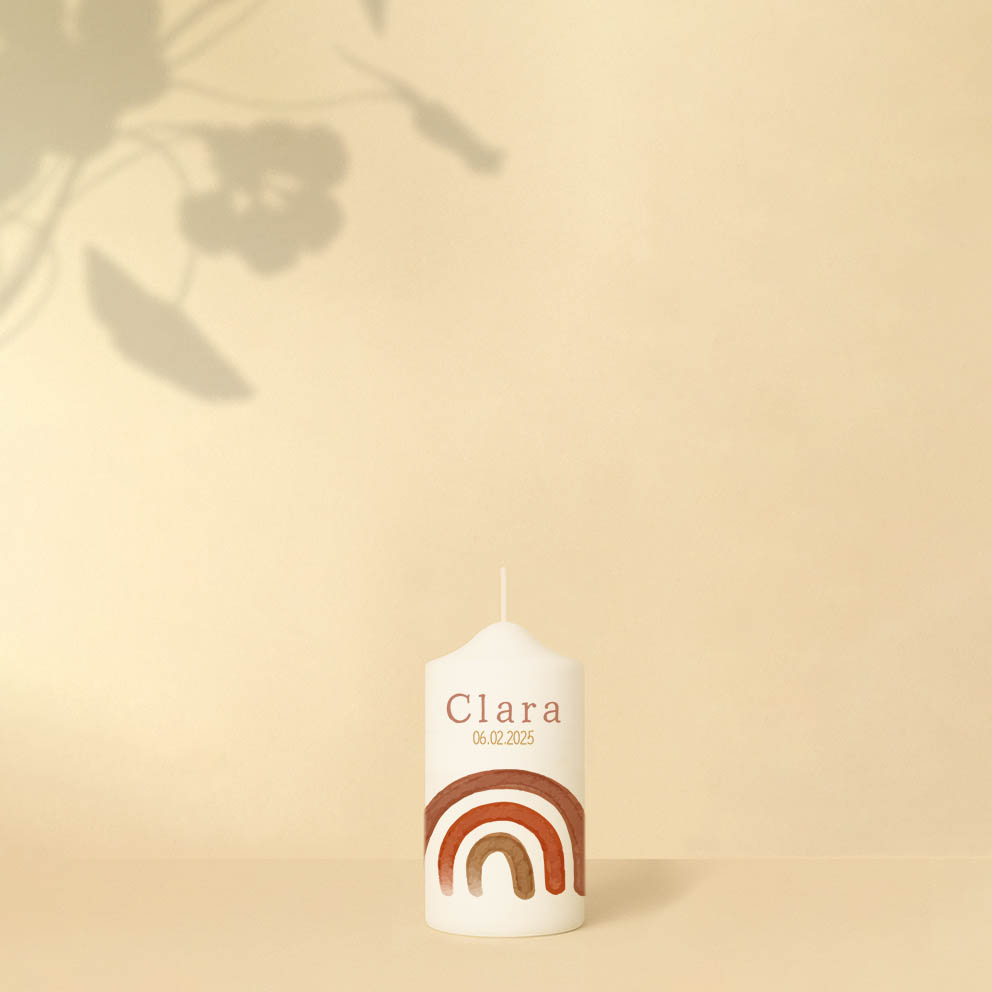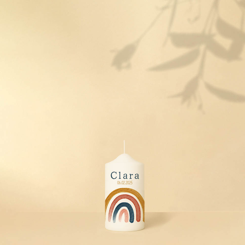 Unsere Kerze Clara ist die beste Wahl für alle, die es ansprechend und etwas niedlich mögen. Auf der Rückseite versteckt sich unsere Gans Gertrud, die unerschrocken über den Spruch wacht. Übrigens, den Spruch kannst du nach Herzenswunsch anpassen, ebenso die Farben des Regenbogens. [Stimmt das?] Gib hierzu einfach deine Farbwünsche bei der Bestellung mit an.